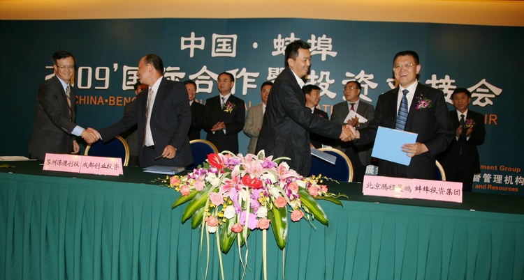 2009年6月29日,“中國·蚌埠2009’國際合作暨投資對接會”在北京隆重舉行。會議的主要目的是使世界了解安徽蚌埠,促進(jìn)安徽蚌埠在更寬領(lǐng)域、更高層次上尋求國際合作,實(shí)現(xiàn)共同發(fā)展。