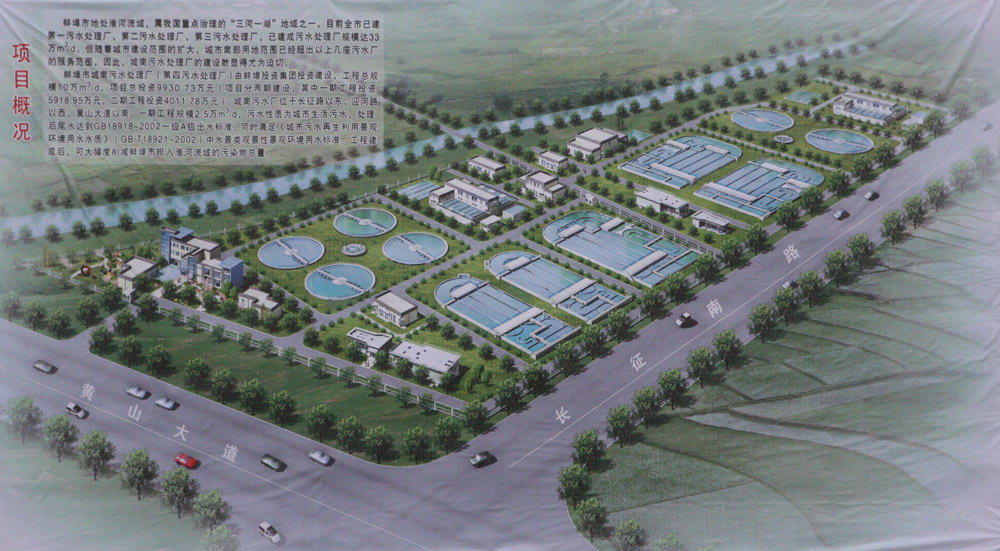 城南污水處理廠位于黃山大道以南、規(guī)劃長征路以東、迎河以西,項(xiàng)目總投資9.8億元,總建設(shè)規(guī)模為日處理污水能力10萬噸,一期工程2.5萬噸/日,設(shè)計(jì)出水水質(zhì)為I級(jí)A標(biāo)準(zhǔn),收水范圍涉及高新區(qū)、禹會(huì)區(qū)、蚌山區(qū)三個(gè)市轄區(qū),服務(wù)面積約