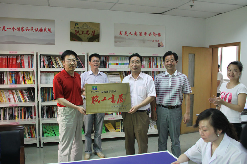 6月8日下午,蚌埠市總工會在中環(huán)水務(wù)公司舉行安徽職工書屋授牌儀式。市總工會紀(jì)檢組長趙西合、宣教部副部長甘子伯等出席儀式,并為中環(huán)水務(wù)職工書屋授牌,中環(huán)水務(wù)工會主席齊中和主持儀式。據(jù)悉,我市僅兩家企業(yè)獲安徽省職工書屋殊榮。