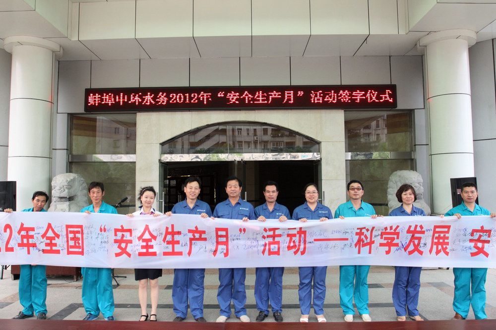615日,蚌埠中環(huán)水務(wù)舉行了“安全生產(chǎn)月”活動簽字儀式,這是“安全生產(chǎn)月”活動中的一項(xiàng)重要內(nèi)容。公司領(lǐng)導(dǎo)班子成員、各部門負(fù)責(zé)人、安全員和100多名員工參加了簽字儀式。
