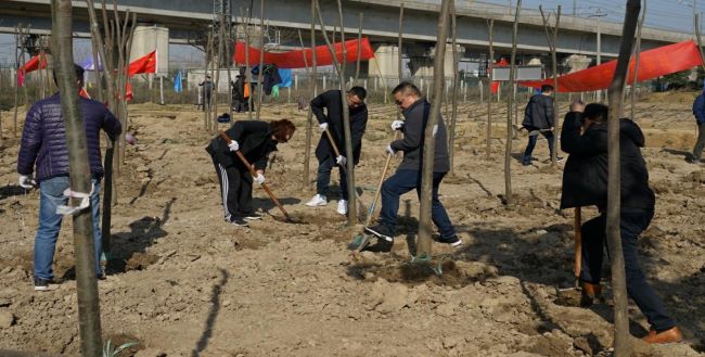 陽(yáng)春三月,春意盎然。3月12日,蚌投集團(tuán)及其下屬子公司在高鐵苗木基地開展2019年義務(wù)植樹活動(dòng)?;顒?dòng)現(xiàn)場(chǎng),大家心情愉悅,熱情高漲。志愿者們紛紛拿起鐵鍬,三兩人一組,相互配合,挖坑、培土、植苗、填平,種下一棵棵樹苗,為綠化貢獻(xiàn)自己的力量。